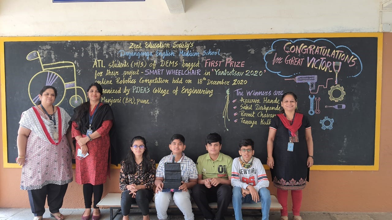 It is a proud moment for DEMS. These young innovators of 9th and 8th standard are Apurv Hande, Sahil Deshpande, Romit Chavan ,Tanaya Kulkarni.