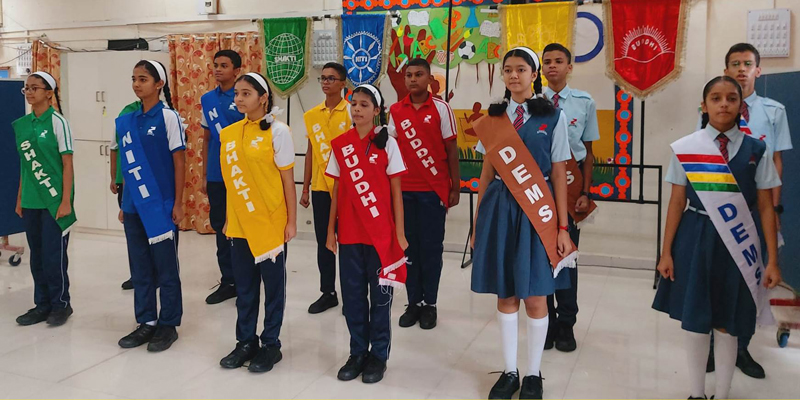 The Programme Continued with conferring titles and investing powers to New Prefects, Head Boy and Head Girl in the investiture ceremony where the student cabinet were felicitated with the badges for bearing the responsibility of the school. Student cabinet took oath to shoulder the responsibilities dedicatedly headed by Principal Renuka Datta.